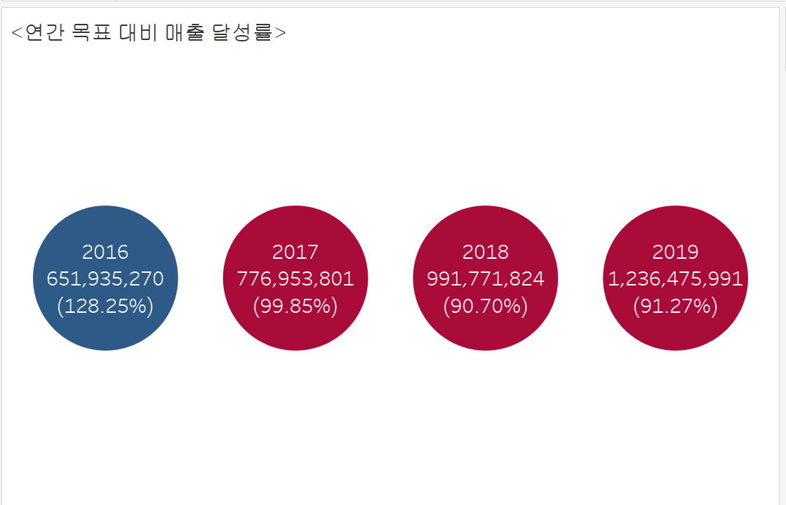 목표 대비 달성률 수치는 보조적인 역할로 주기 위해 앞뒤로 괄호를 넣어주겠습니다.