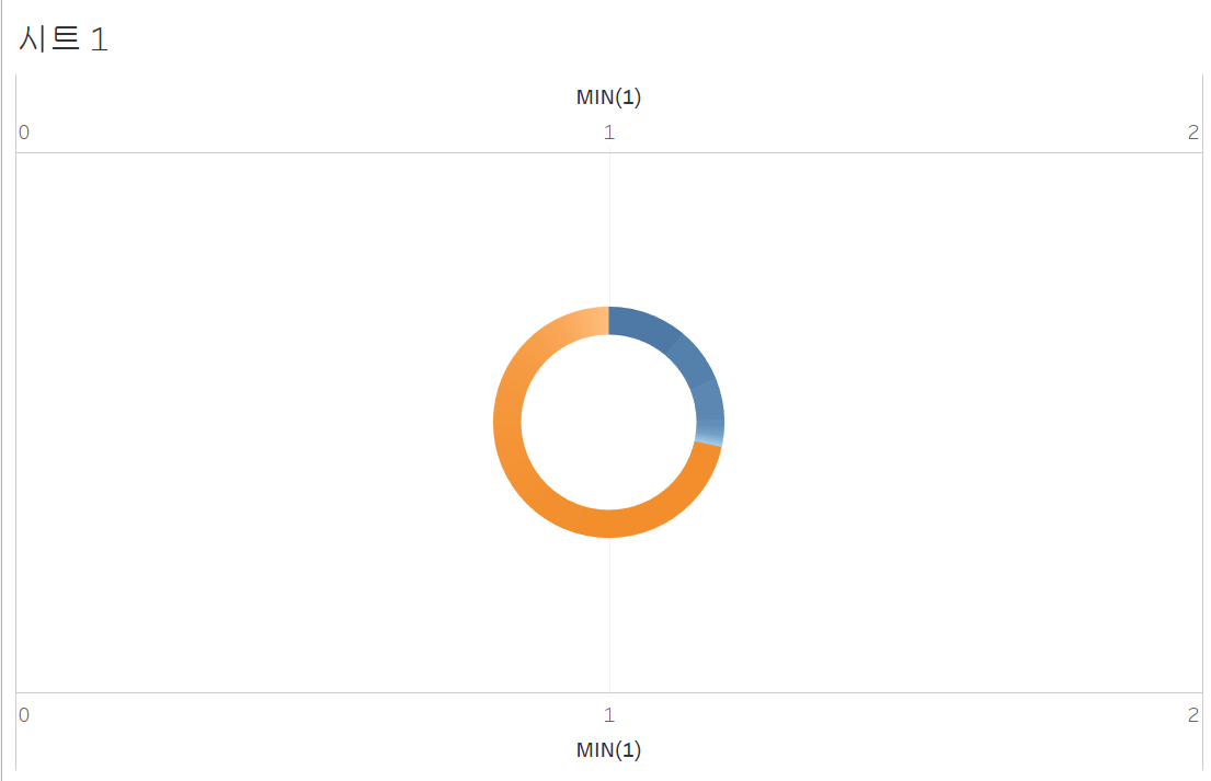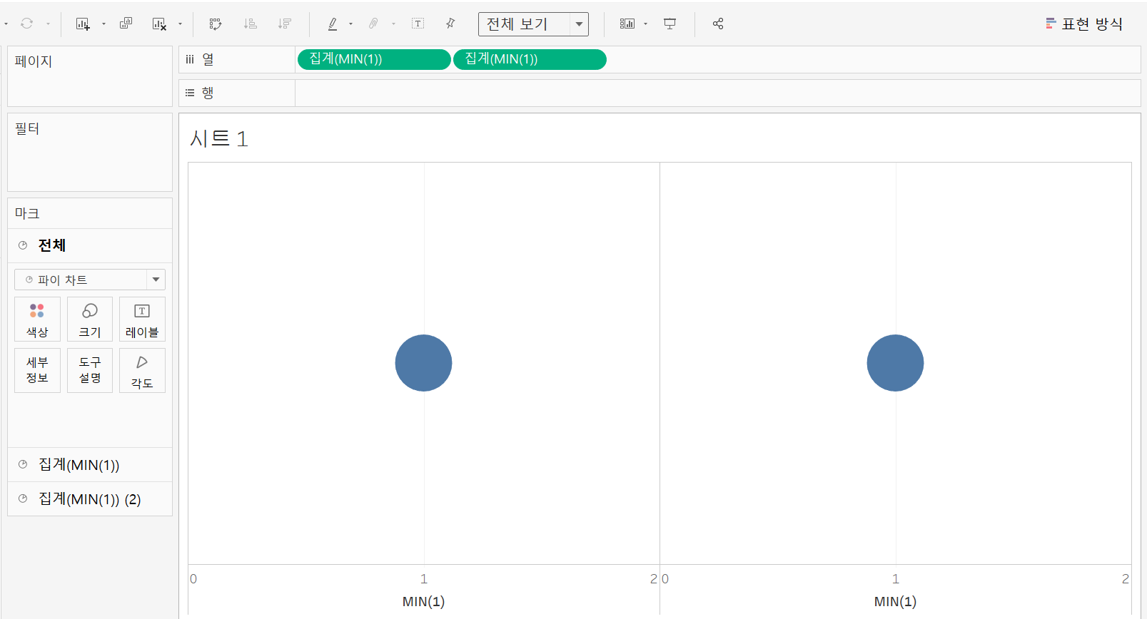 도넛 차트를 만들기 위해 열 선반에서 오른쪽에 있는 '집계(MIN(1)'을 우클릭 후 '이중 축'을 선택합니다.