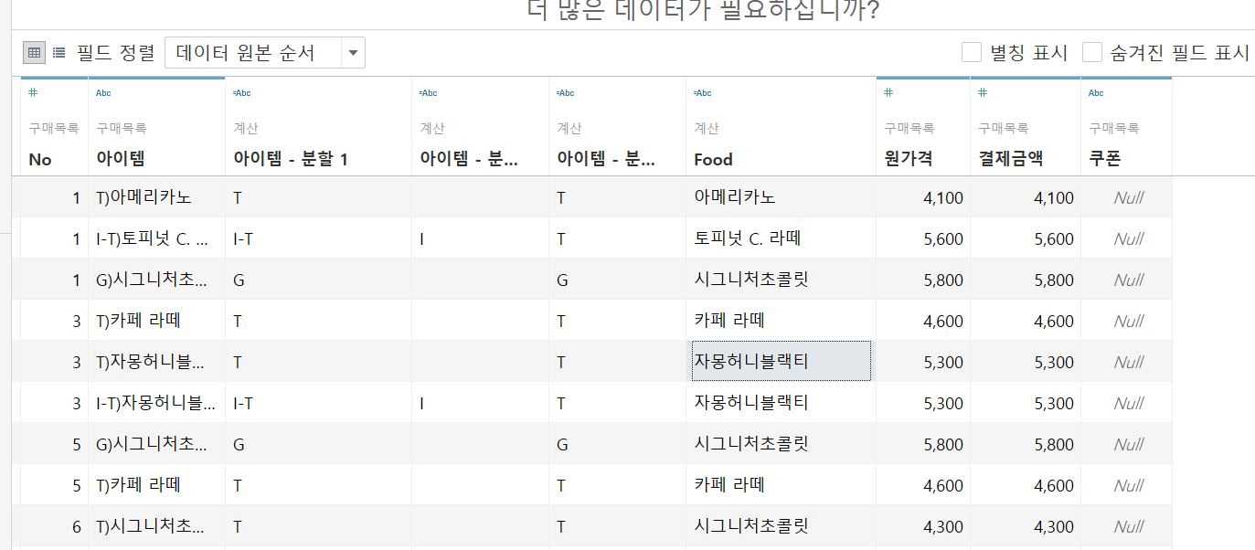 데이터 원본 : 스타벅스 구매목록.xlsx