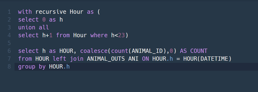 프로그래머스 SQL 풀이 : 입양 시각 구하기(2) 본문