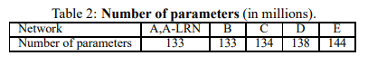 Table2에서는 각각의 네트워크에서 사용한 파라미터의 수를 나타내고 있습니다.