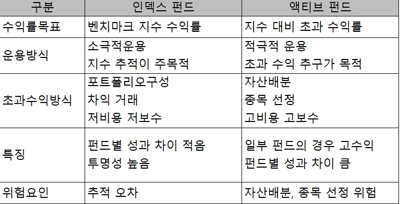 - 인덱스 펀드 vs 액티브 펀드 vs ETF