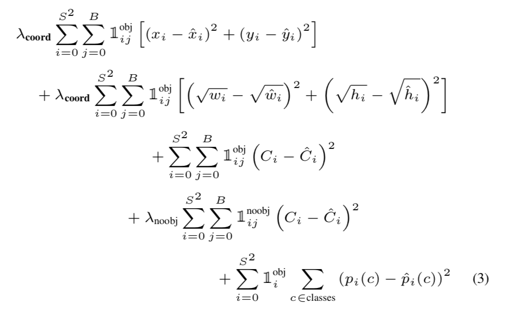 지금까지 조금 복잡하지만 아주아주 신기한 yolo의 네트워크 구조를 알아보았다. 그렇다면 이 네트워크를 어떻게 학습시킬 수 있을까? 저자들은 아주 세심하게 디자인 된 로스 펑션을 제시한다.