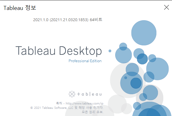 태블로 버전을 확인할 경우 '도움말' -> 'taebleau 정보' 클릭 으로 가능 (윈도우 기준)