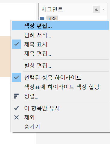 세그먼트를 드래그하여 색상으로 가져와 드롭해줍니다.