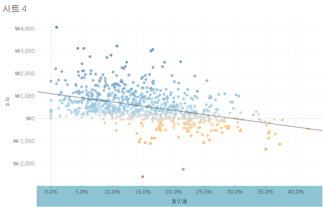 추세를 보면 할인율이 높을 수록 수익은 감소하고 있습니다.
