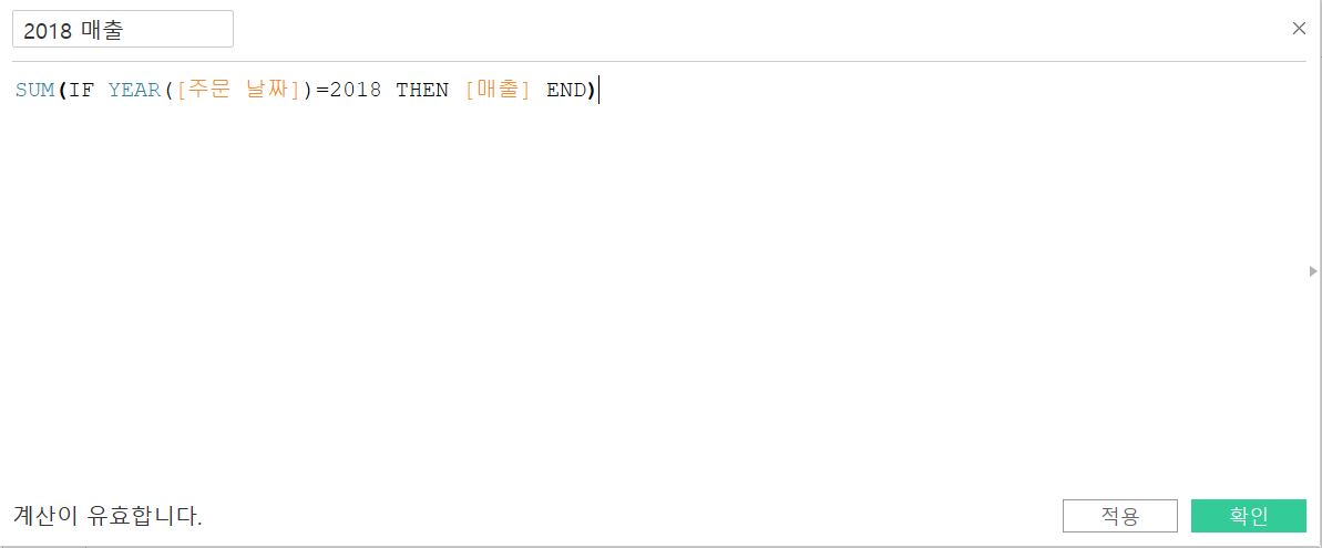 그리고 '2019 매출'을 잡고 뷰에 드래그하여