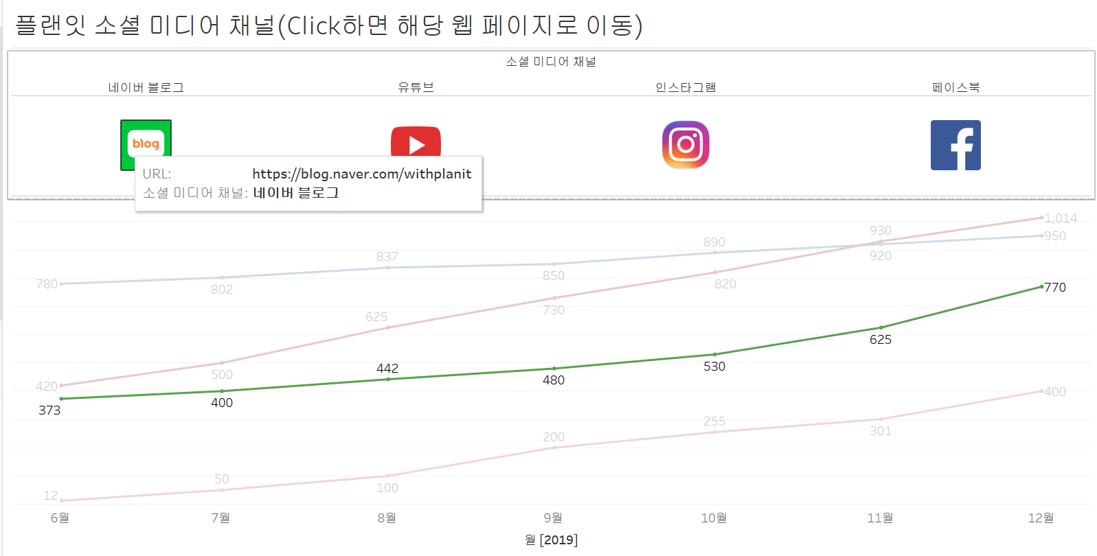 ' 플랜잇 소셜 미디어 채널 (Click하면 해당 웹 페이지로 이동)'으로 변경합니다.