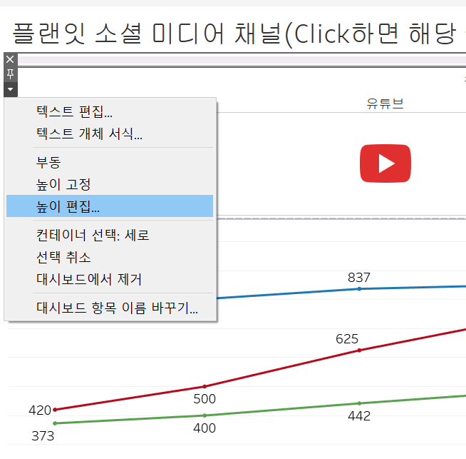 이번에는 대시보드 제목 밑에 라인을 추가 해보겠습니다 .