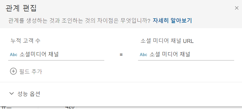 그리고 '소셜 미디어 채널 URL'이라는 시트를 '누적 고객 수'라는 시트와 연결해보겠습니다.