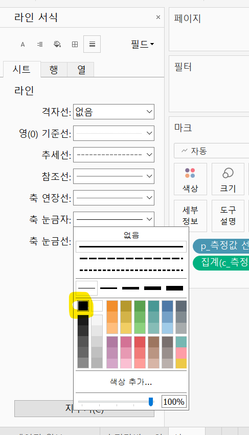열과 행의 축 눈금자를 검은색으로 변경하겠습니다.