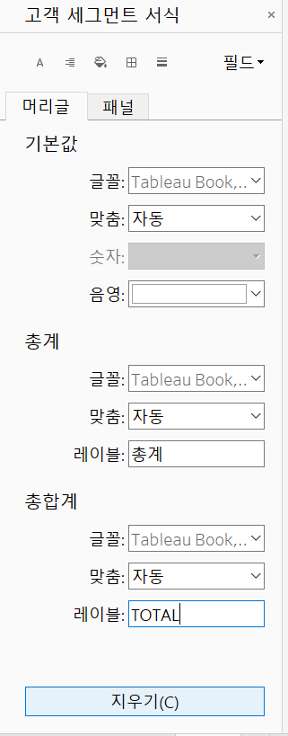 뷰 상단에 있는 '총합계'를 우클릭 후 서식을 선택 하고 머리글 탭에 있는 총합계의 머리글을 기존 총합계에서 'TOTAL'로 변경합니다.