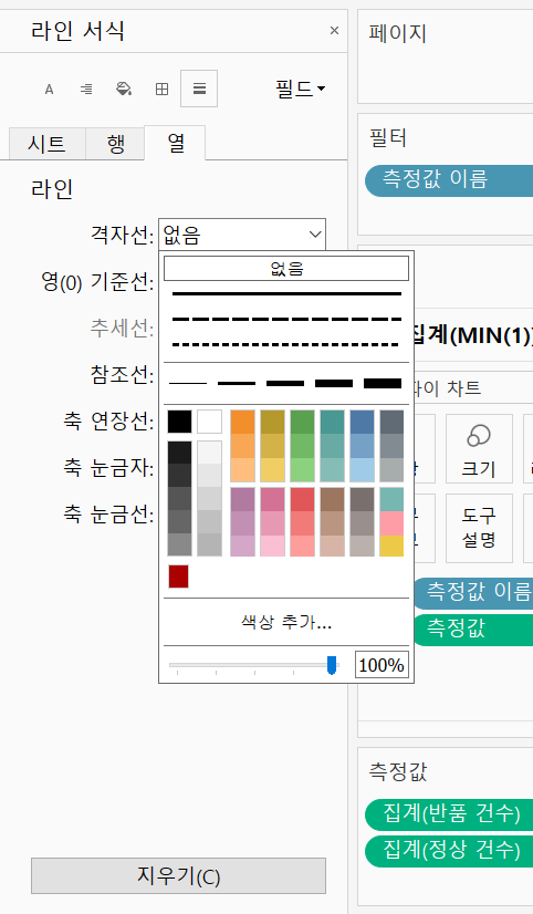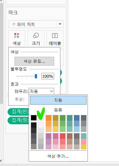 그리고 반품 건수와 정상 건수를 명확히 분리하기 위해 색상 마크를 선택 후 효과-테두리를 흰색으로 변경합니다.