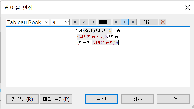 그리고 생성된 반품 건수를 텍스트 마크에 올려줍니다.