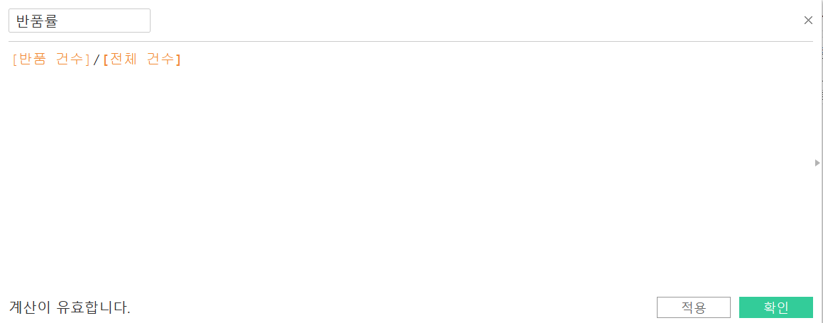 반품률도 표시하기 위해 반품률 필드도 만들어 보겠습니다.